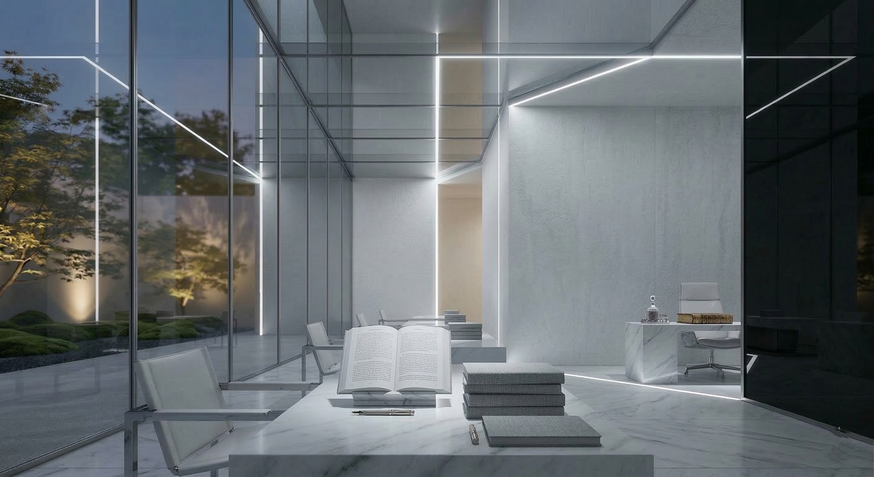 大理石と線状光源が生む。診察ではなく、魂の再生。沈黙そのものが治療となる。